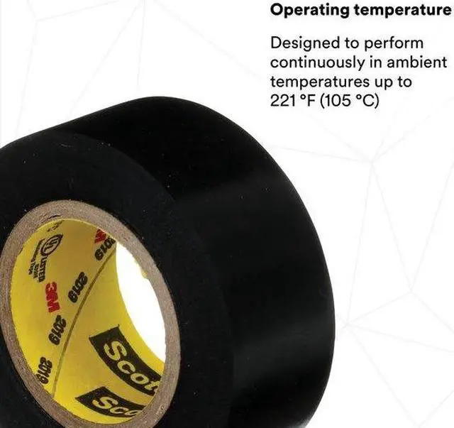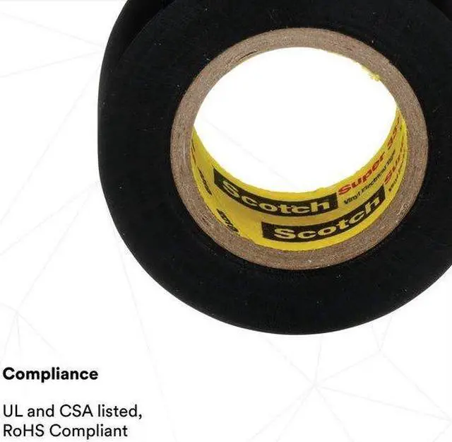 Electrical Tape, General Purpose, Vinyl, Tape Adhesive Material Rubber, 3/4 in, 6 5/8 yd, 7 mil, 3M (TM), Scotch (R), Series Super 33+, Black, Minimum Tape Performance Temperature 0 Degrees F, Maximum Tape Performance Temperature 221 Degrees F, Voltage Rating 600 V, Continuous Roll, Single-Sided, Package Quantity 10. This item has been restricted from sale in the following state (s): []