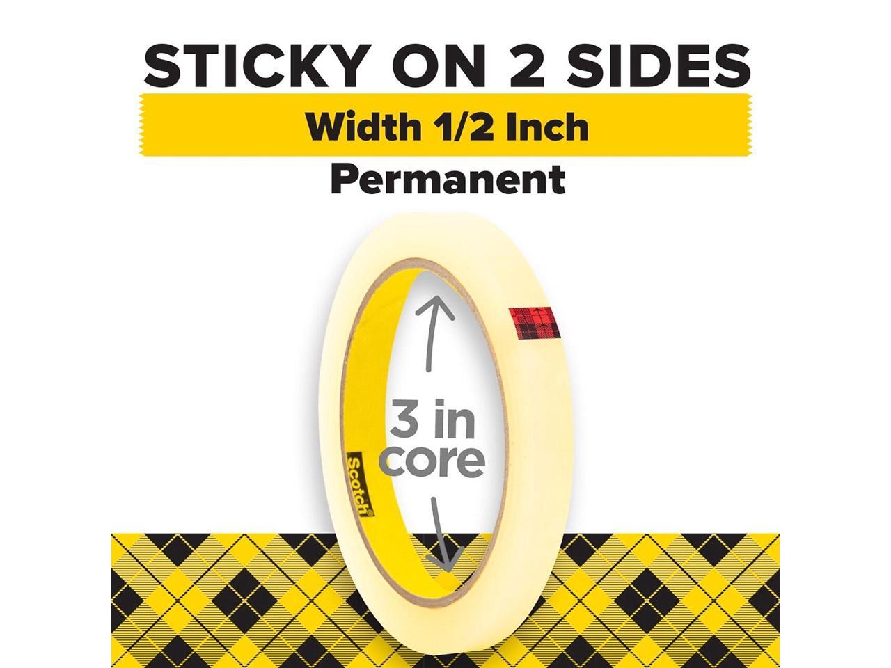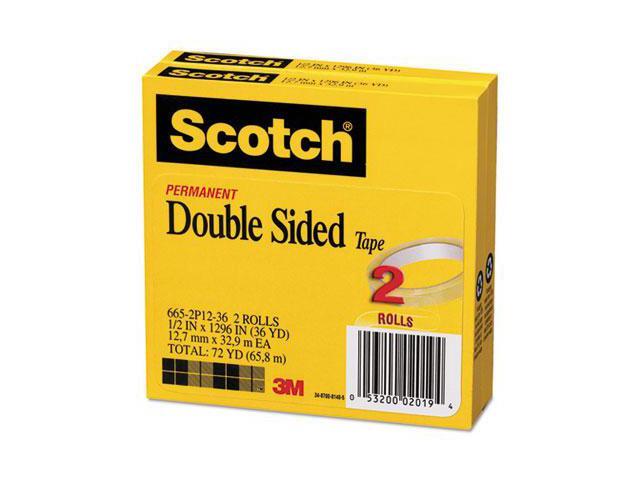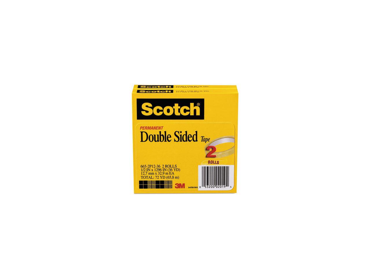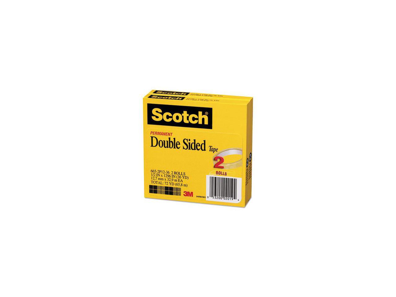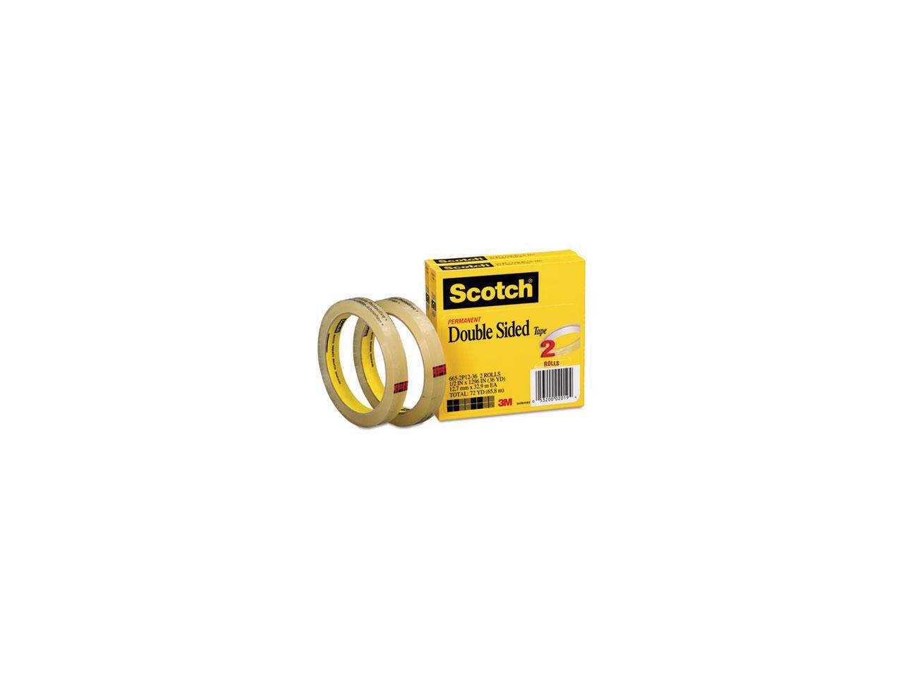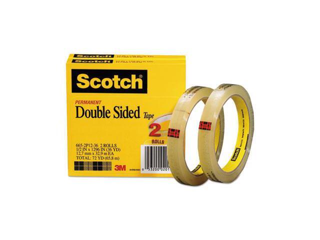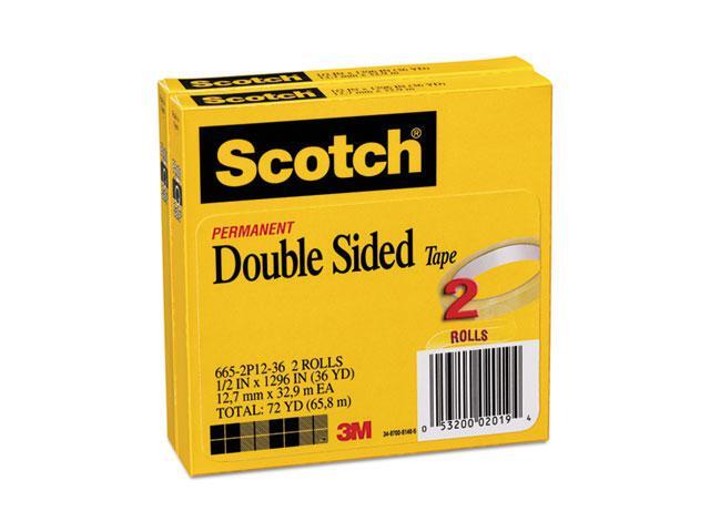 Scotch 665 Double-Sided Tape 1/2" x 1296" 3" Core Transparent 2/Pack 6652P1236