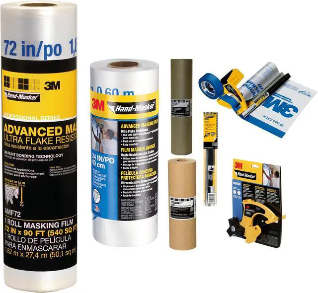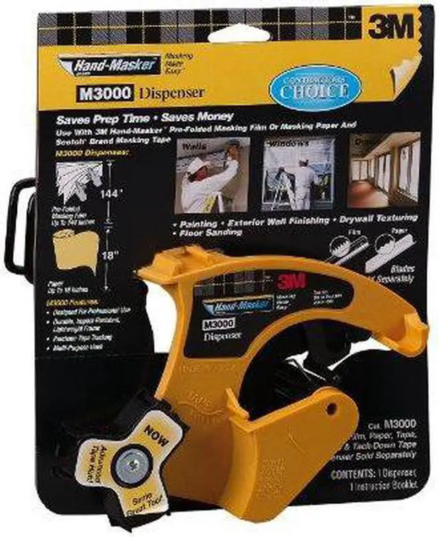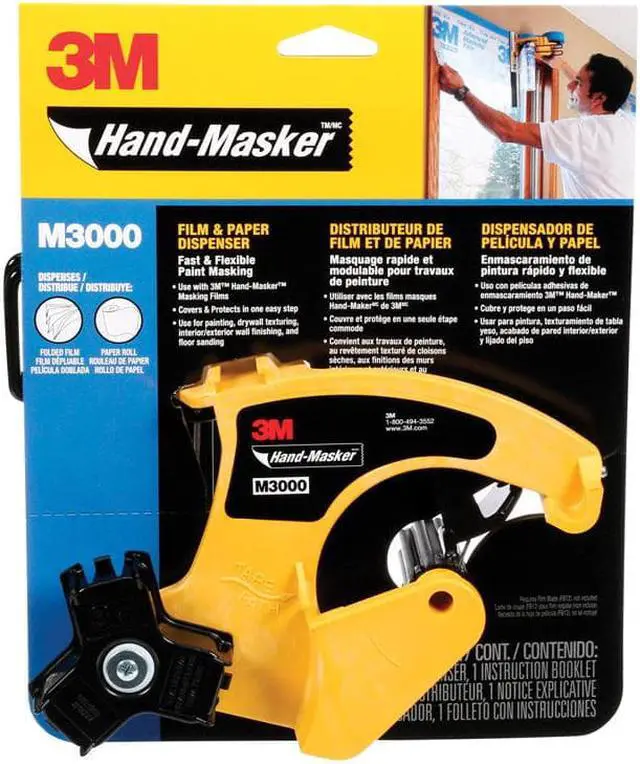 3M Hand-Masker Dispenser & Accessories is an assortment of products to apply masking tape to film or paper in one continuous application. The products are used in a seamless 4-in-1 tool to save time when preparing for painting, ceiling texturing, exterior wall finishing or floor sanding. The following are the dispensers and accessories that can be purchased.