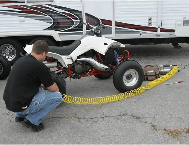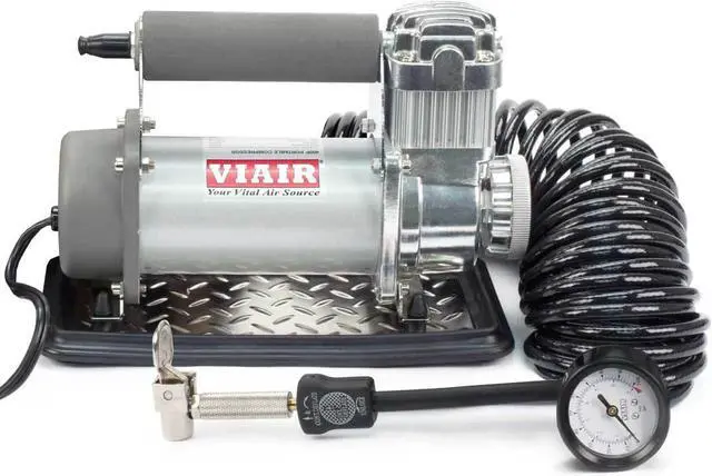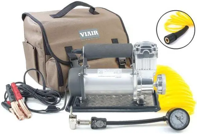 400P is a larger portable compressor kit that can inflate up to a 35-inch tire from 0 to 30 PSI in less than 5 minutes. Used and approved of by off road enthusiasts worldwide, the 400P can save you when you re miles from home. VIAIR 400P portable compressors are shipped complete with an open-ended (free-flowing) air delivery hose with a quick-connect coupling, a pressure gauge, an air filter element with replaceable air filtration media, a vibration-resistant sand tray, inflation tips, and a deluxe carry bag for simple stowage and increased portability.