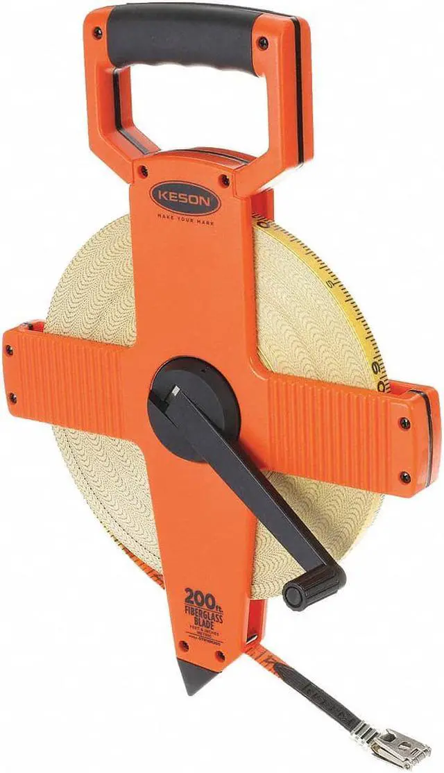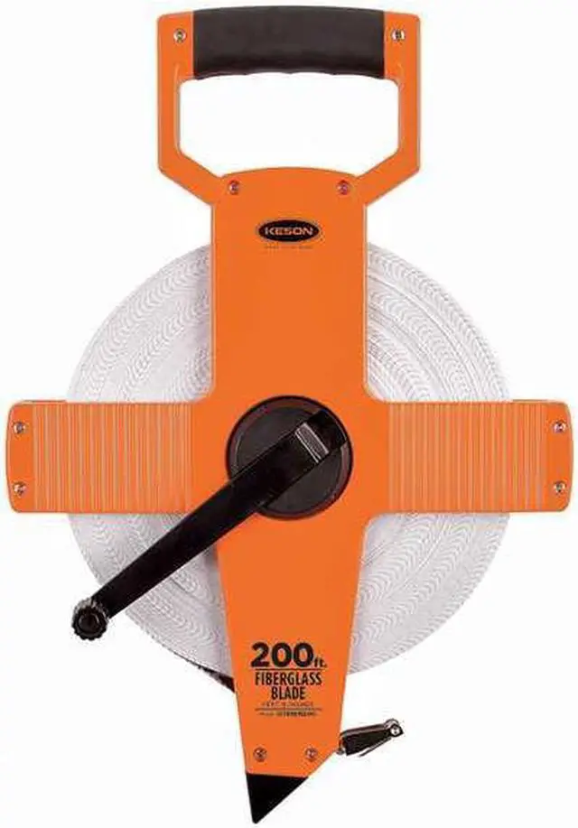 Tape Measures, Long Tape Measure, SAE/Metric, Blade Length 200 ft/60m, Blade Width 1/2 in, Graduation Type in /ft/mm, Graduations 2mm, Blade Material Fiberglass, Tip Style Folding Hook, Zero Point, Case Type Open, Case Material ABS, Belt Clip No, Blade Color Yellow/White, Case Color Pumpkin, Blade Coating Clear, Lock Type None, Rewind Type Manual, Standout Not Rated, Stud Markings Yes, Features Double Sided Graduation, Double Throat Rollers, Hook End. This item has been restricted from sale in the following state (s): []