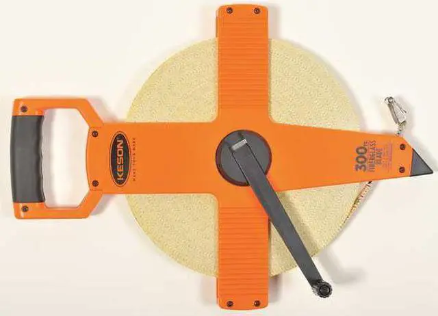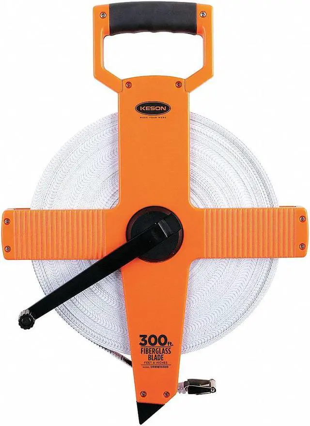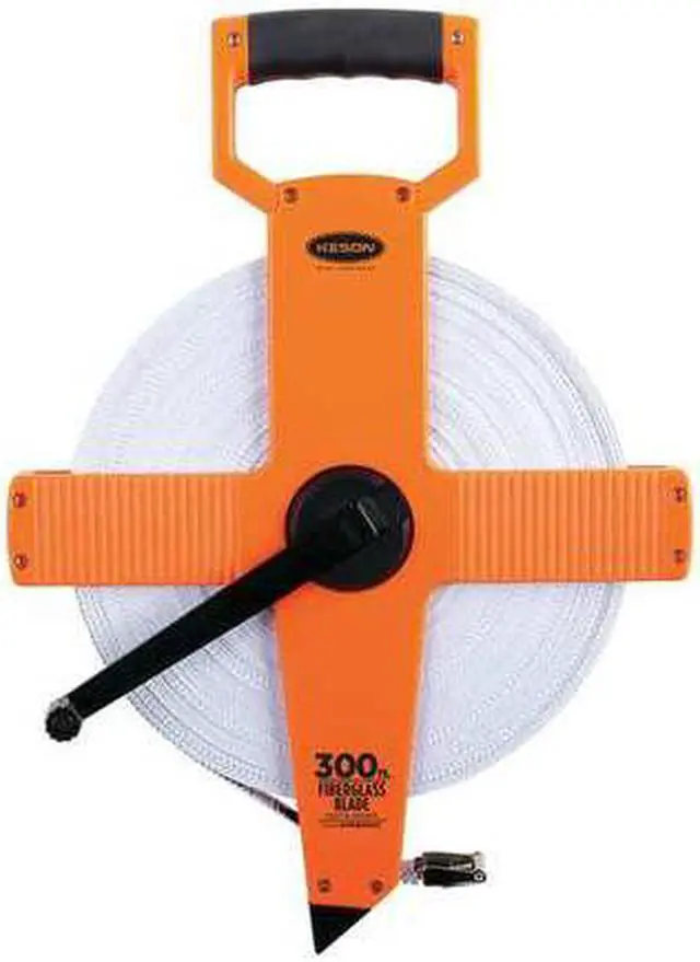 Long Tape Measure, Features Double-Sided, Case Material ABS Plastic, System of Measurement SAE/Engineers Scale, Graduation Marks 1/8 in, Tip Style Nonmagnetic Double Hook, Zero Point Location Hook End, Blade Length - Metric Not Applicable, Blade Length - SAE 300 ft, Blade Material Fiberglass, Blade Width 1/2 in, Blade Return Type Manual, Blade Type Double-Sided, Case Color High-Visibility Orange, Case Length 12 in, Lock Type Nonlocking, Graduation Units Feet, Inches. This item has been restricted from sale in the following state (s): []