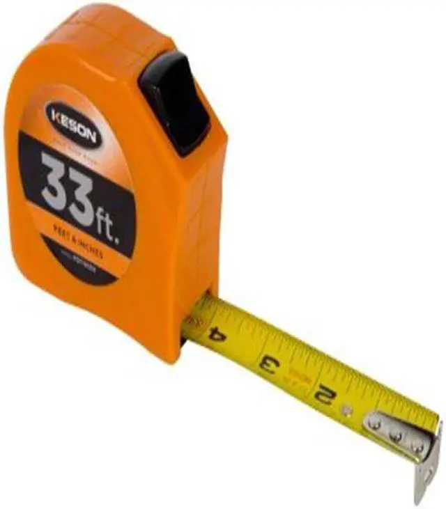 Tape Measure, Features Blade, Case and Components, Impact Durability, Lock, Case Material ABS Plastic, System of Measurement SAE, Graduation Marks 1/16 in, 1/32 in (1st 12 in), Tip Style Nonmagnetic Single Hook, Zero Point Location Hook End, Blade Length - Metric Not Applicable, Blade Length - SAE 33 ft, Blade Material Steel, Blade Width 1 in, Blade Return Type Automatic, Case Color Orange, Lock Type Toggle, Graduation Units Feet, Inches, Standout Length 8 ft, Case Type Closed. This item has been restricted from sale in the following state (s): []