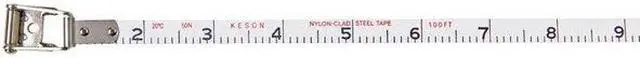The Keson NRS10200H 200 ft Engineers Tape Measure is the perfect tool for measuring long distances. The tape measure has a 1/100 ft graduation on one side and a 1/10 ft graduation on the other, allowing you to choose the scale that best suits your needs. The engineers tape measure features an automatic rewind mechanism, so you can quickly retract it after use. Its rubber grip provides added comfort when using this tape measure. This Keson product also has double nylon coating, which gives it superior durability and protection against rust and corrosion.