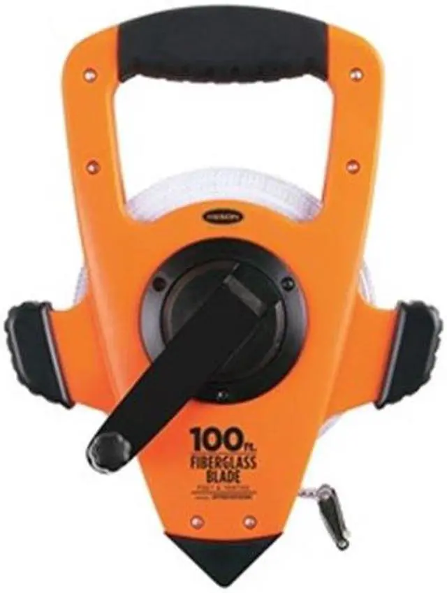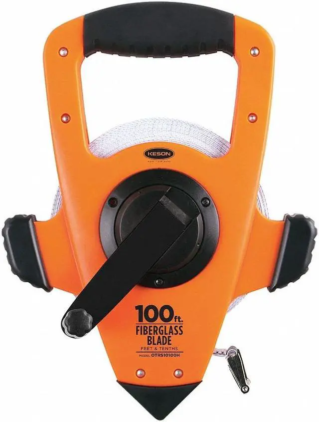Engineers Tape Measures, Engineers Long Tape Measure, Engineers, Blade Length 100 ft, Blade Width 1/2 in, Graduation Type ft, Graduations 1/10, 1/100 ft, Blade Material Fiberglass, Tip Style 2-Rivet Hook, Case Type Open, Case Material ABS Plastic, Belt Clip No, Blade Color White, Case Color Orange, Blade Coating Double PVC, Lock Type No Lock, Rewind Type Manual, Standout Not Rated, Stud Markings No, Features Rubber Grip, Speed Rewind Metal Gearing