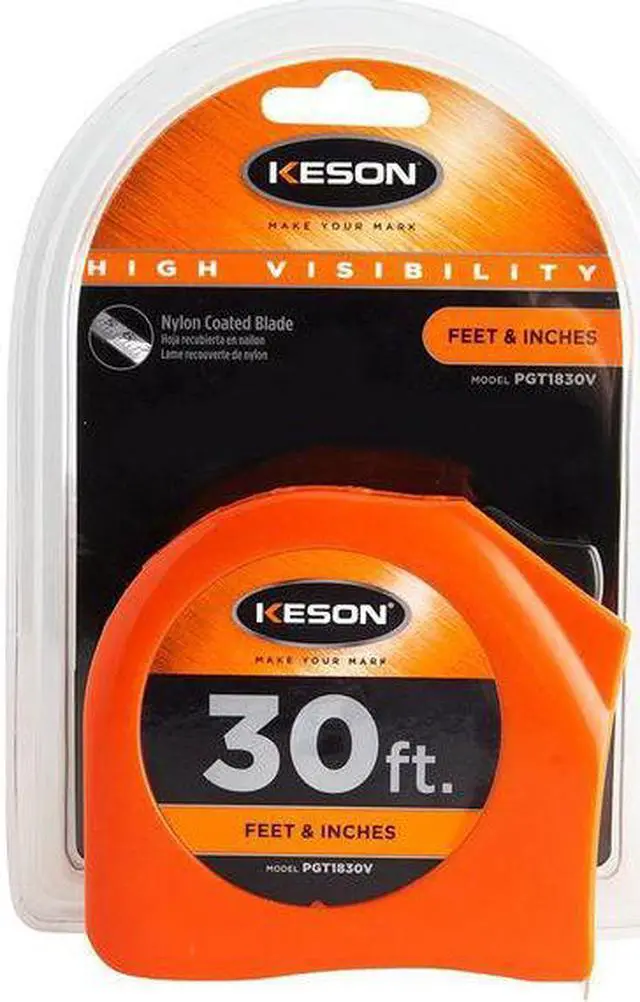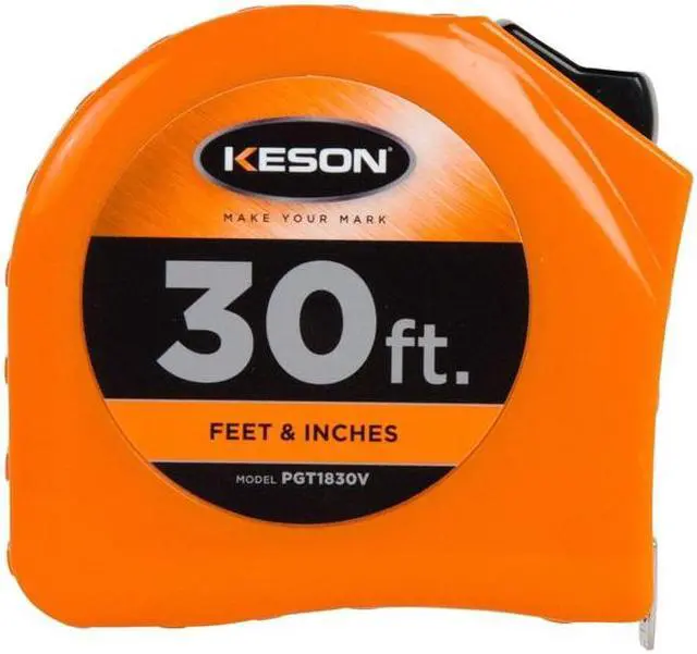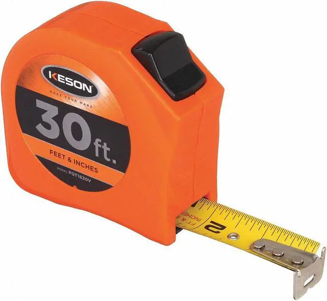 The Keson PGT1830V 30 ft Tape Measure is a durable and easy to use tool that you will want to take with you on the job. It has a yellow blade, orange case and locking toggle. This tape measure has graduations of 1/16" thereafter, 1/32" first 12". With its impact durability, this tape measure can withstand any harsh conditions it might face. The ABS case is made from a tough material that is scratch resistant. The Keson PGT1830V 30 ft Tape Measure will prove itself useful time and again.. This item has been restricted from sale in the following state (s): []