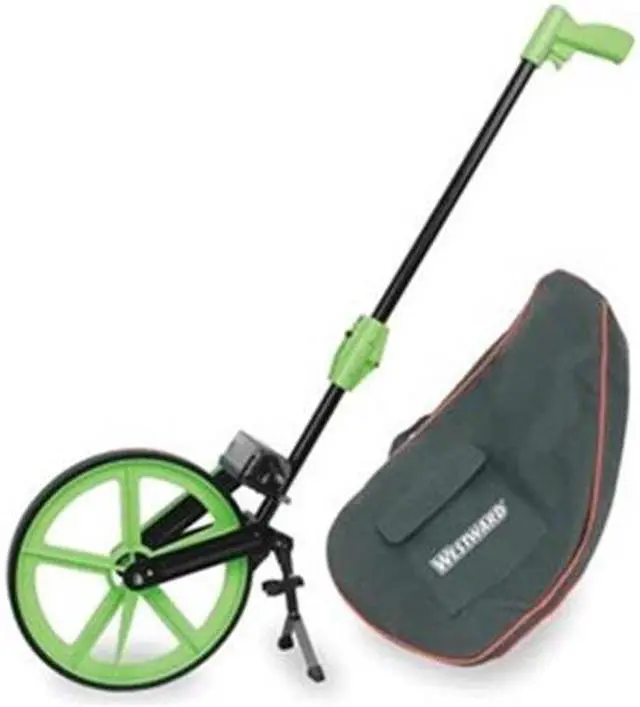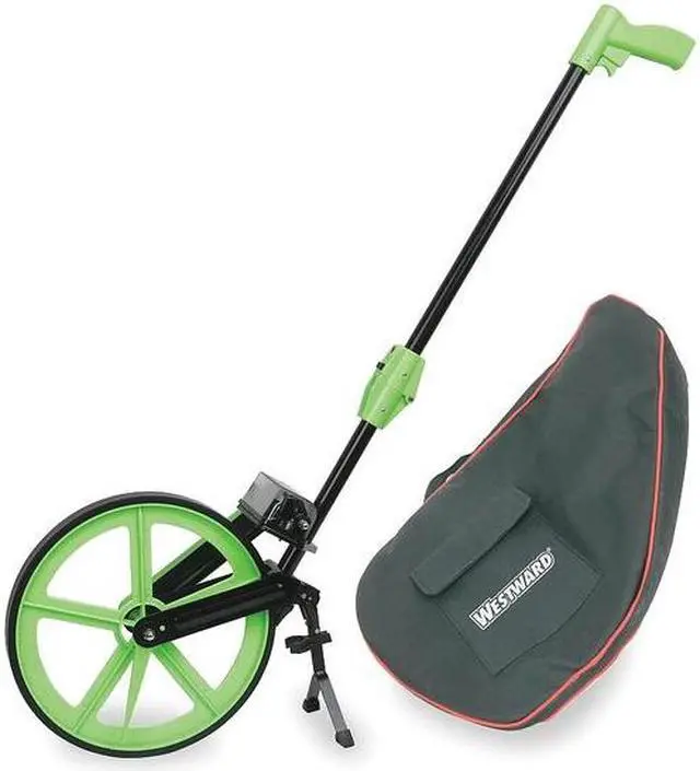 California Proposition 65: This product contains a chemical known to the State of California to cause birth defects or other reproductive harm. Measuring Wheel With Stand, Spoked, - Series, Wheel Circumference 1m, Wheel Dia. 32cm, Measuring Range 100, 000m, Measuring Units m, Handle Extended L 44 In., Safety Green, High Impact Polycarbonate, Net Weight 7.3 lb., Adds And Subtracts, Folds For Storage And Transport, 6 Digit Ratchet Counter, Push Lever Button To Reset, Nylon Carrying Case, For Landscaping, Surveying, Utilities. This item has been restricted from sale in the following state (s): []