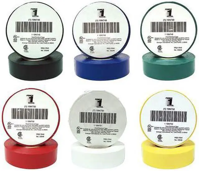 Electrical Tape Color Assorted Set, Tape Backing Material Vinyl, Tape Adhesive Rubber, Tape Thickness 7.00 mil, Tape Width 3/4 in, Tape Length 60 ft, Tape Shape Continuous Roll, Tape Color Black/Blue/Green/Red/White/Yellow, Max. Voltage 600, Min. Tape Performance Temp. 20 Degrees F, Max. Tape Performance Temp. 175 Degrees F, Tape Adhesive Strength 16 oz/in, Series Economy, UV Resistance No, Tape Color Family Multi-Color