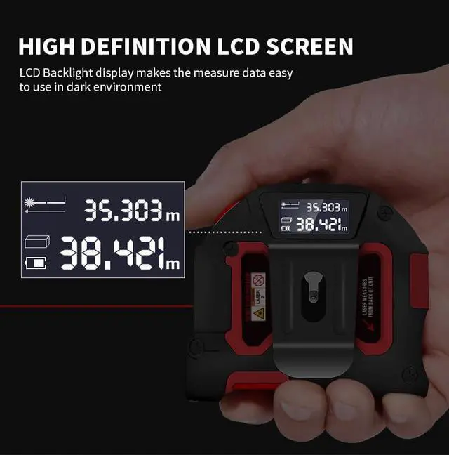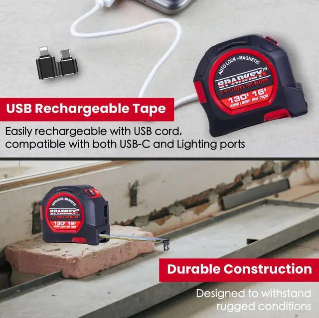 PREMIUM GRADE DURABILITY W/ USB RECHARGEABLE: This Laser tape measure is built to last with its impact-resistant, rust-proof, and chemical-free design. Designed with a double-sided measuring ruler and a magnetic hook, this magnetic tape easily attaches to ferrous materials for hands-free measuring. Whether you're an electrician, architect, or contractor, the versatility of this digital tape ensures it adapts to various job site requirements, making your work faster and more efficient.