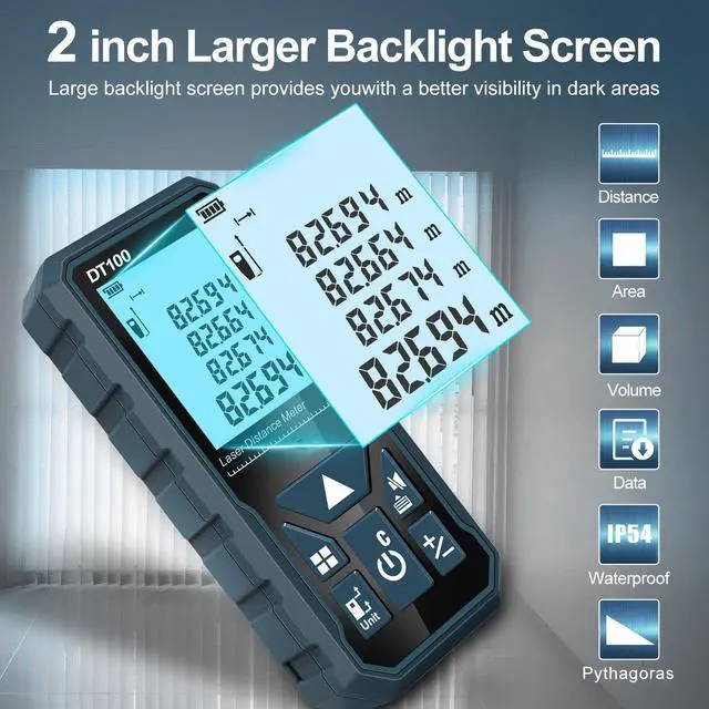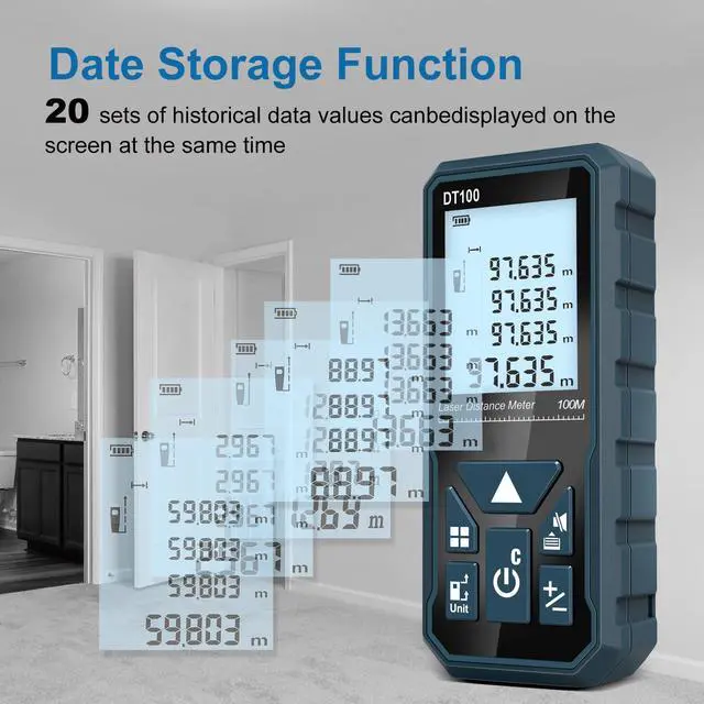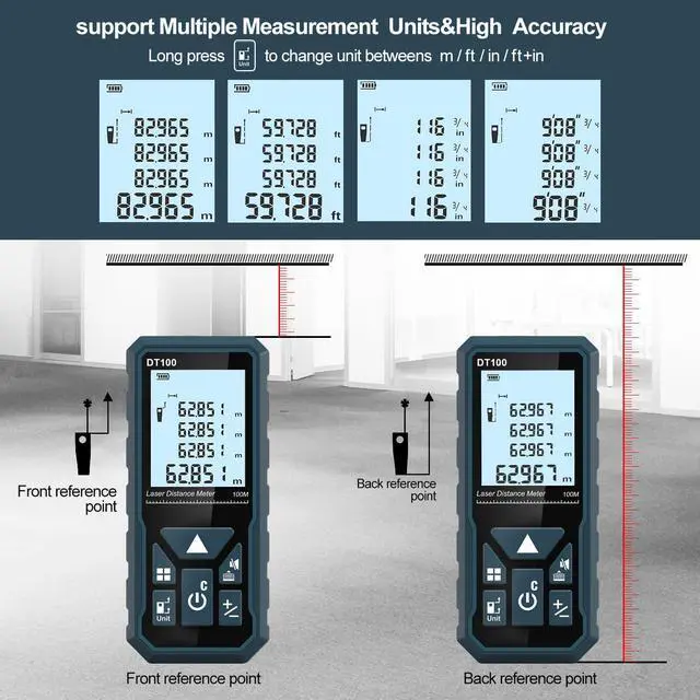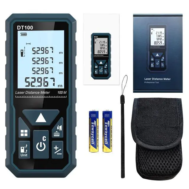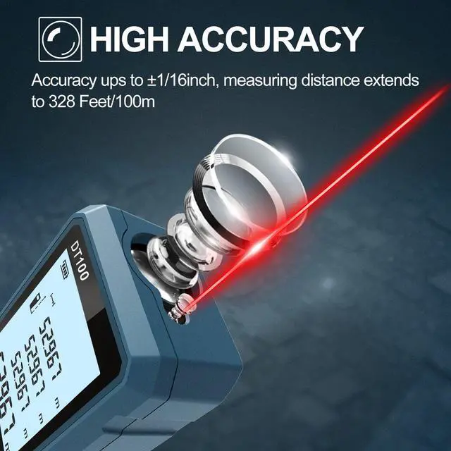 The DT00 laser measure uses a brand-new high-precision laser sensor and highly sensitive reflective glass, which can achieve fast and accurate measurement. Thanks to our advanced manufacturing process, DT100 is compact, lightweight and durable.