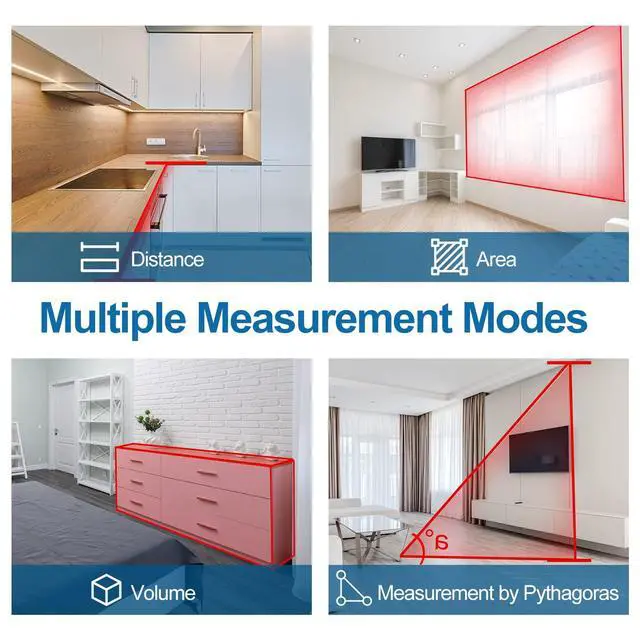 It can calculate the area of a square or rectangular room or space by measuring its length and width and multiplying the two values.