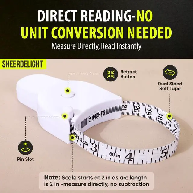 No more struggling to hold the tape! SheerDelight body measuring tape locks automatically after pulling for hassle-free measurements.