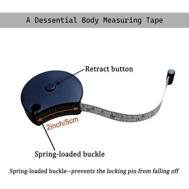 This is an ergonomically curved body tape measure with an enlarged reading window that allows this body tape measure to display measurements instantly. Dual-use Retractable Tape Measure for Body :Waist Hip Bust Arms Height Muscle Building Weight Loss and More.