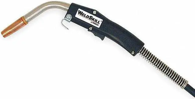 MIG Gun, MIG Gun Type Air-Cooled, Cooling Method Air-Cooled, Series WeldSkill WM 400, Maximum Current 400 A, Duty Cycle 60 Percent, For Gas Type CO2 (Carbon Dioxide), Maximum Wire Diameter 0.063 in, Cable Length 15 ft, For Rear Connection Type Tweco-Compatible, Handle Type Curved, Trigger Type Standard, Neck Tube Type Fixed, Neck Tube Angle 60 Degrees, For Wire Type Aluminum, Solid, Model WM400-15-116, Tip Series WS14, Welding Processes MIG Welding (GMAW). This item has been restricted from sale in the following state (s): []