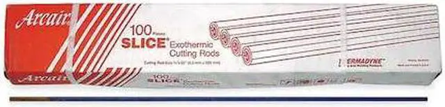 Exothermic Cutting Rod, Finish/Coating Flux Coated, Outside Diameter 1/4 in, Overall Length 22 in, Welding Processes Air Carbon Arc Cutting and Gouging (CAC-A), Application Bridge Construction, Industrial and General Fabrication, Mining, Repair and Maintenance, Steel Erectors, Core Material Flux, Features Cutting Rod Sustains the Burn Without Constant Electrical Power Once Ignited, One Piece Patented Construction Maintains the Balance Necessary to Sustain the Exothermic Reaction. This item has been restricted from sale in the following state (s): []