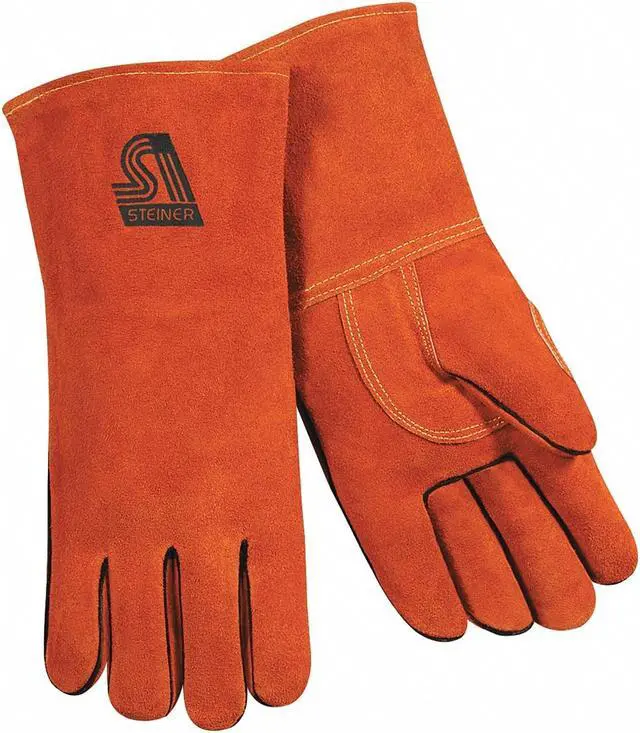 California Proposition 65: This product contains a chemical known to the State of California to cause birth defects or other reproductive harm. Welding Gloves, Welding Glove Application Stick, Leather Palm Material Cowhide, Glove Back Material Cowhide, Glove Length 14 in, Glove Leather Grade A, B, Thumb Style Straight, Glove Cut Gunn, Glove Color Family Red, Cuff Slip-On, Glove Size L, Hand Left and Right, 1 Pair