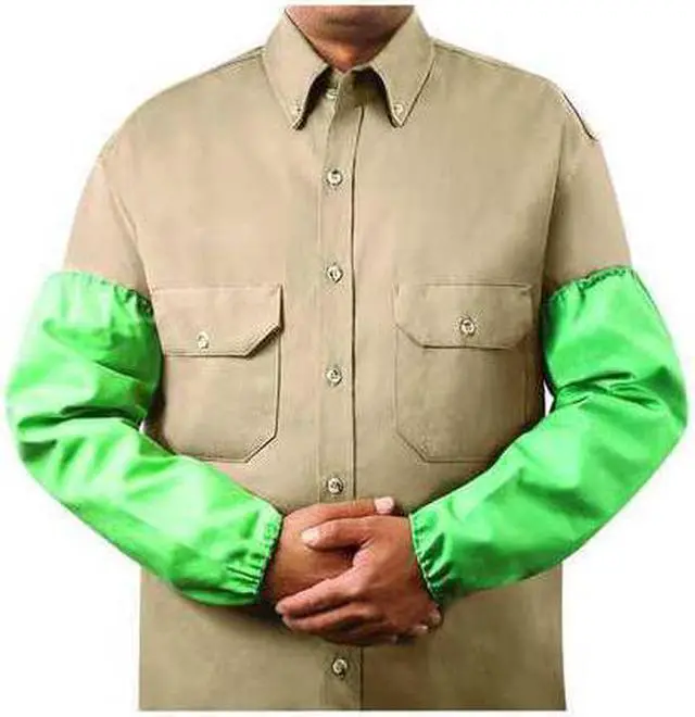 Flame-Resistant Sleeve, Color Green, Cuff Style Elastic, Heat Protection Type Sparks, Welding, Material Cotton, Size Universal, Sleeve Length 18 in, 1 Pair