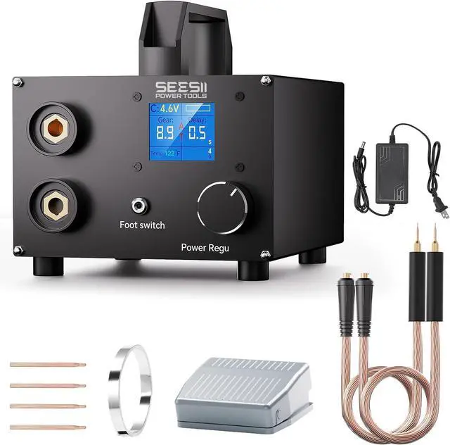 AC-Powered Spot Welder: This SEESII SE-223 battery spot welder delivers up to 1400A from 3000F supercapacitors; provides stable, high-energy output for spot welding 0.1-0.3mm nickel strips; ideal for battery pack building and repair