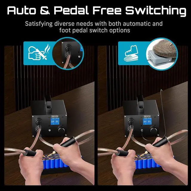 Flexible Dual Operation Modes: Designed as a professional-grade battery spot welder, it supports automatic trigger mode and manual foot pedal mode; allows hands-free welding or precise control depending on task; optimizes workflow when working with varied battery assemblies