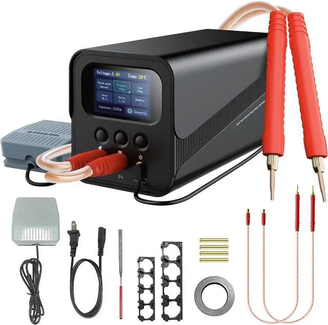 Aluminum Alloy Housing & Complete Kit Rugged aluminum-alloy enclosure with smooth edges is resistant to wear and helps dissipate heat. The insulated welding pens include replaceable copper tips for reliable current delivery. Package includes: SK-10P spot welder unit, AC power cord, foot pedal, pair of welding pens, nickel strip roll, battery holders, nickel-plated plates, spare welding tips, fine-grit file and user manualeverything you need to start building battery packs.