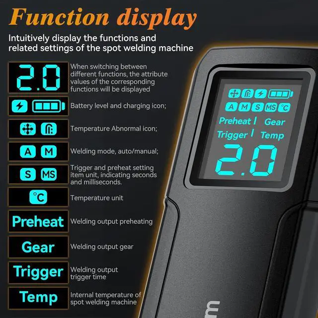 The color LCD displays features: product temperature, welding mode selection, preheat time, trigger time, power level selection no guesswork, just clear, real-time insights.