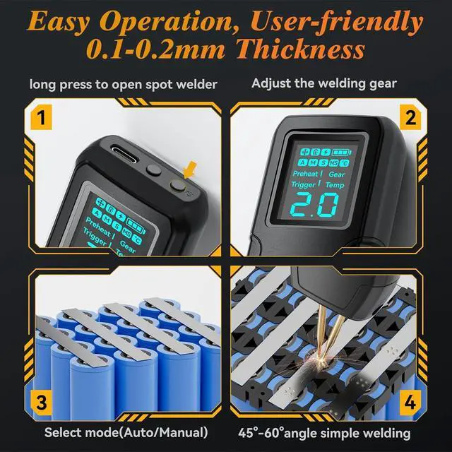 Professionally designed, this mini spot welder is suitable for home or on-the-go use, perfect for battery repair professionals and battery DIY enthusiasts.
