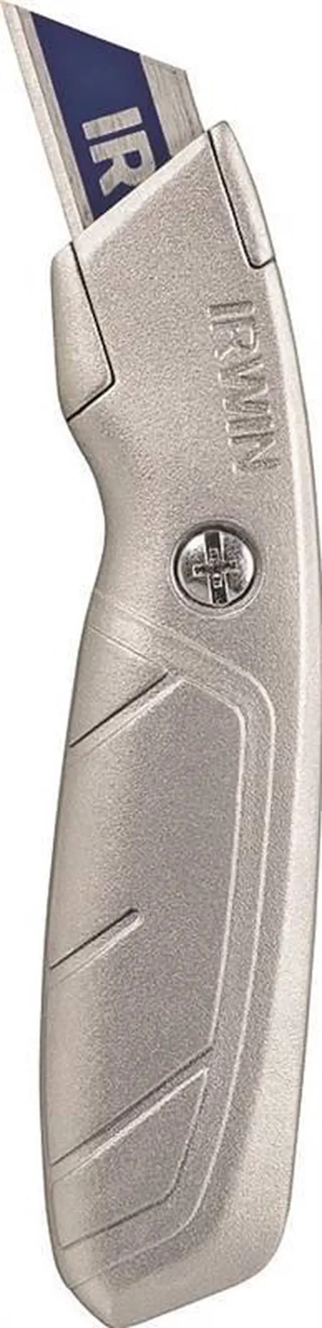 Utility Knife, Fixed Blade, Blade Type Utility, Blade Change Screw, Overall Length 6 1/2 in, Blade Material Bi-Metal, Handle Color Natural Aluminum, Handle Material Aluminum, Number of Blades Included 1, Tether Style Tether Capable, Overall Width 1 1/2 in, Overall Thickness 5/8 in, Position 1, Handle Type Ergonomic, Features Optimized Cutting Angle for Reduced Fatigue, Stores (5) Blades, Application General Purpose, Includes Bi-Metal Blade. This item has been restricted from sale in the following state (s): []