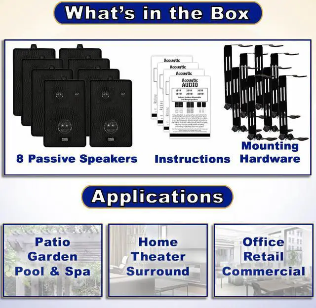 Acoustic Audio by Goldwood 251B Outdoor Mountable Wired 8 Speaker Set