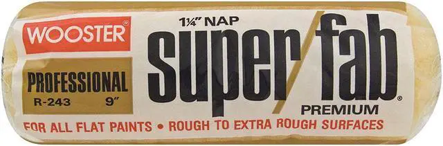 Paint Roller Cover, Cover Type Standard, Surface Texture Extra-Rough, Compatible Roller Frame Style Cage, 9 in Overall Length, 1 1/4 in Nap Size, Surface Material Brick, Concrete, Wood, Paint Type Flat Paints, Satin Paints, Stains, Waterproofing, Core Diameter 1 1/2 in, Cover Material Knit Fabric, Core Material Polypropylene, For Use With BR549-11, R017-9, R030-9, R402-11, R404-11, R405-13, R501-9, Sheen Type Low Sheen. This item has been restricted from sale in the following state (s): []