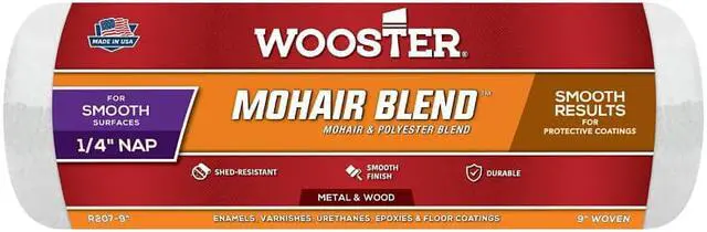 Paint Roller Cover, Cover Type Standard, Surface Texture Smooth, Compatible Roller Frame Style Cage, 9 in Overall Length, 1/4 in Nap Size, Surface Material Adhesives, Epoxies, Floor, Paint Type All Paints, Enamels, Epoxies, Floor Coatings, Urethanes, Core Diameter 1 1/2 in, Cover Material Mohair Fabric, Polyester, Core Material Polypropylene, For Use With 9 in W, Any 1 1/2 in dia Cage Frame. This item has been restricted from sale in the following state (s): []