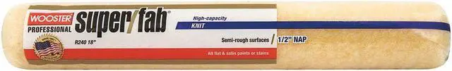 Paint Roller Cover, Cover Type Standard, Surface Texture Semi-Rough, Compatible Roller Frame Style Yoke, 18 in Overall Length, 1/2 in Nap Size, Surface Material Brick, Concrete, Drywall, Masonry, Wood, Paint Type Oil Based Paints, Water Based Paints, Core Diameter 1 1/2 in, Cover Material Knit Fabric, Core Material Polypropylene, For Use With 8614, BR412-21, BR045-18, BR047-18, BR036-18, Includes (2) End Caps, Sheen Type Low Sheen. This item has been restricted from sale in the following state (s): []