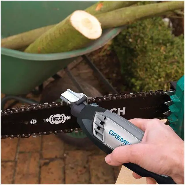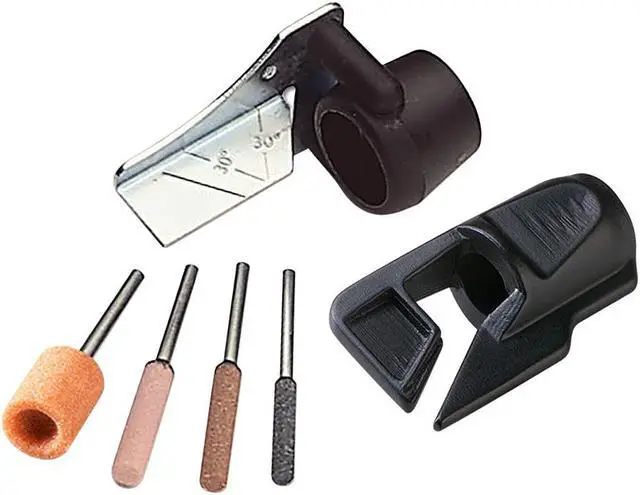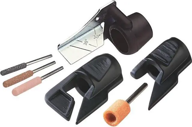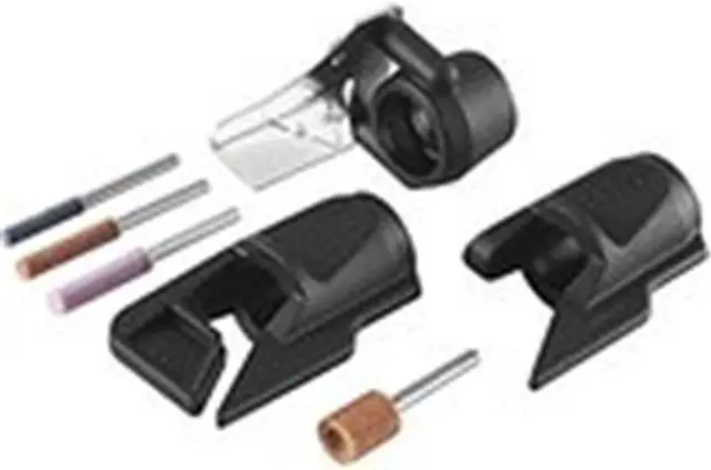 The Dremel A679-02 Outdoor Gardening Tool Sharpening Kit contains three attachments that let you maintain your outdoor garden tools with ease. The Lawn Mower Sharpener sharpens your lawn mower blades for a healthy, beautiful lawn. The Garden Tool Sharpener sharpens garden tools such as shovels, shears, hoes and axes so they work more efficiently. And the Dremel Chain Saw Sharpener lets you sharpen dull, slow-cutting chain saw blades. Keep your gardening tools in top shape, and get your gardening done efficiently with the help of Dremel's Gardening Tool Sharpening Kit.