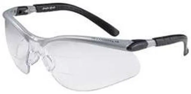 Bifocal Safety Reading Glasses, + 2.00 Top and Bottom Diopter Strength, Clear Lens Color, Anti-Fog Lens Coating, Wraparound Eyewear Frame Design, Black/Gray Frame Color, Polycarbonate With Nylon Temples Frame Material, Polycarbonate Lens Material, Silver/Black Temple Color, Adjustable Temple Style, 0.999 UV Protection, Eyewear Venting Non-Vented, X-Ray Detectable No, Includes Adjustable Lens, Standards ANSI Z 87.1 -2003, CSA Z 94.3 -2002, Eyewear Frame Style Half-Frame, Eyewear Size Universal. This item has been restricted from sale in the following state (s): []
