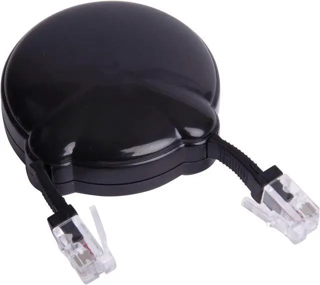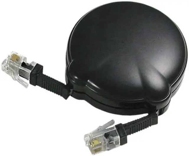 Cord manager features a retracting handset cord that automatically winds telephone cord to prevent tangles. Easy-to-install cord manager retracts on both ends and requires no tools. Design allows a long reach. Color: Black