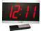 - Large digital 4" x 11" bright red LED display- Anti glare matt finish display lens- Time Date and Inside Temperature display format- Remote control for adjusting time setting alarms turning alarms on and off etc- Dual alarm function- 5-level dimmer control- 9 minutes snooze control- 6 different display modes- Wall mountable includes hardware- User selectable 12 or 24 hour time format- Power Source: DC Adaptor Powered with Battery Backup