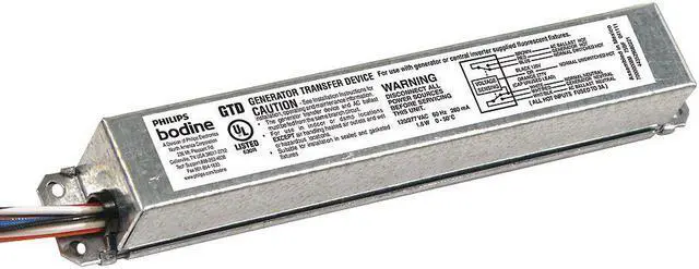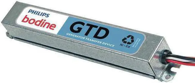 Bodine, Generator Transfer Device, Fluorescent, Incandescent, LED Bulb Type, 8 in Length, 1 3/16 in Width, 1 3/16 in Height, Standard Profile, 24 hr Emergency Illumination Time, Number of Bulbs Supported 1, Housing Material Steel, 120/277V AC. This item has been restricted from sale in the following state (s): []