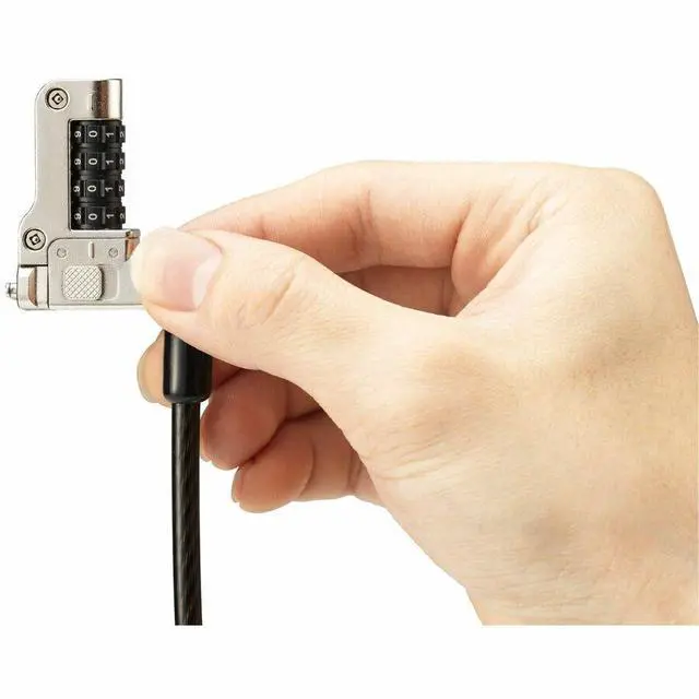 6ft ( 1.8 m) Carbon Steel CableResists cutting attempts and features a plastic sheath that protects desktop surfaces while offering ample length for anchoring your laptop to desks, tables, and other fixed structures. Seriali