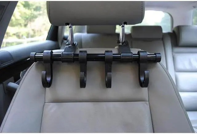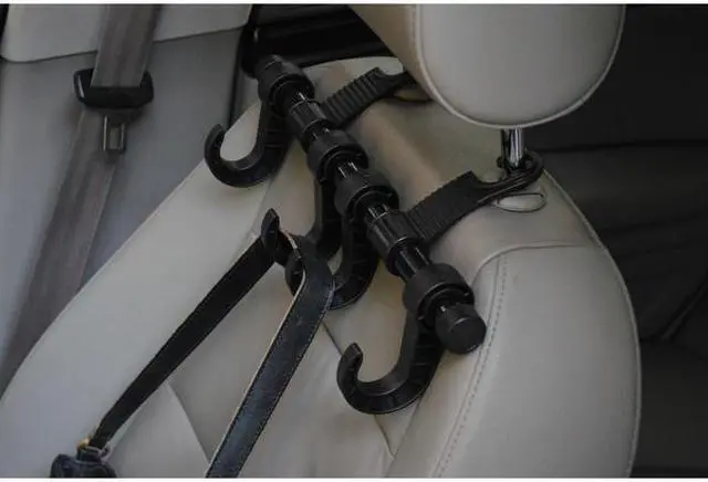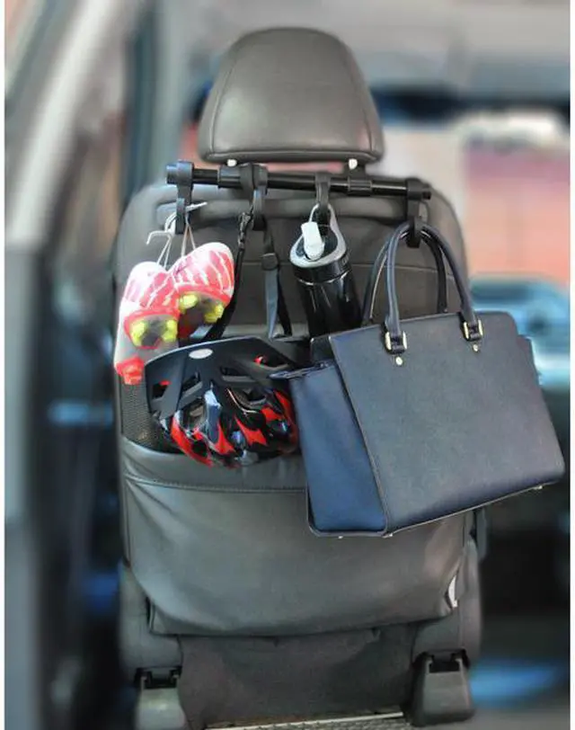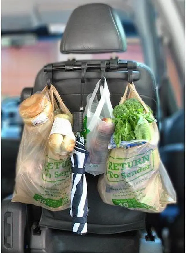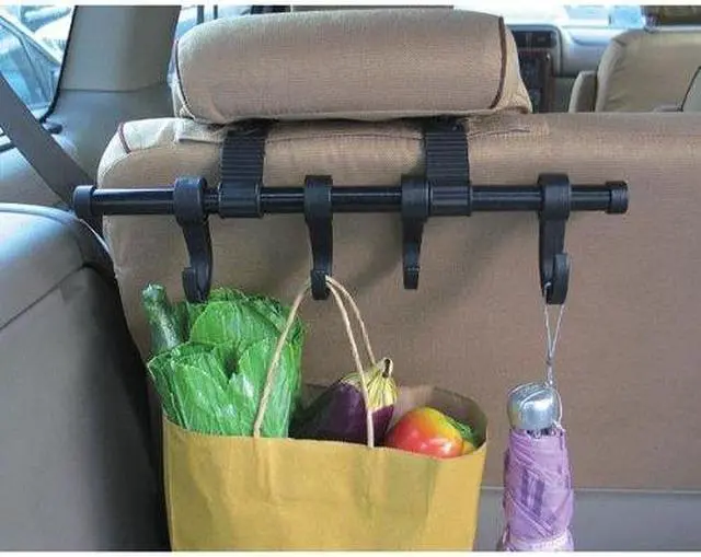 The Multi hanger holder shopping bags, kid's backpacks, lunch boxes, coats, handbags, trash bags, umbrellas and more. Attach the hanger to the back of the car headrest to create clean, functional storage in any vehicle. Each hook holds up to 5 pounds. Offers the most hanging options: Get organized and stay organized. Keep the things you need the most close at hand and off the floor. Perfect for cars or mini-vans: Great for parents on the go .No more sporting equipment ,grocerices for the family,or baby supplies rolling around. Easy set up to the headrest post: Attaches easily to any headrest post with diameter of1/2 inch or less. Add hooks to each headrest and double your storage. Never lose belongings in your car. Shopping bags. Coats and jackets. Purses. Trash bags. Kid's jackets. Back packs. Lunch boxes. Umbrellas. Gym bags. Small duffle bags.