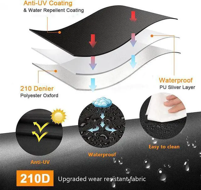 Our Outdoor Grill Cover are made with PU-lined Oxford material that is waterproof, UV-resistant and tear-resistant, day in, day out, protecting your grill from the harsh environment, such as heavy wind, rain, storms, intense sunshine, dusty, snow etc, keep clean.