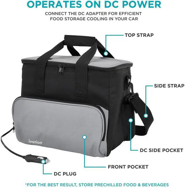 Hit the Road & Beat the Heat with the Ivation Portable Electric Cooler Bag! Spacious 15 Liter (4 Gallon) Capacity Holds Cans, Bottles, Food & Other Perishables for Icy Enjoyment Anywhere | Includes Cooler Pack/Lunchbox & DC Adapter for Plugging Into Vehicle with 12V Outlet Including Cars, Trucks, RVs & Boats