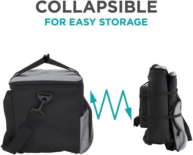 Heavy-Duty Exterior Coating is Made of Soft Yet Sturdy Polyester, While Thick, High-Quality Insulation Boosts Thermal Resistance for Keeping Hot/Cold When Unplugged | Tote Handles a Hefty 20+ Can Load Capacity, is Lightweight for Travel & Features Flexible Folding Walls that Collapse for Convenient Storage