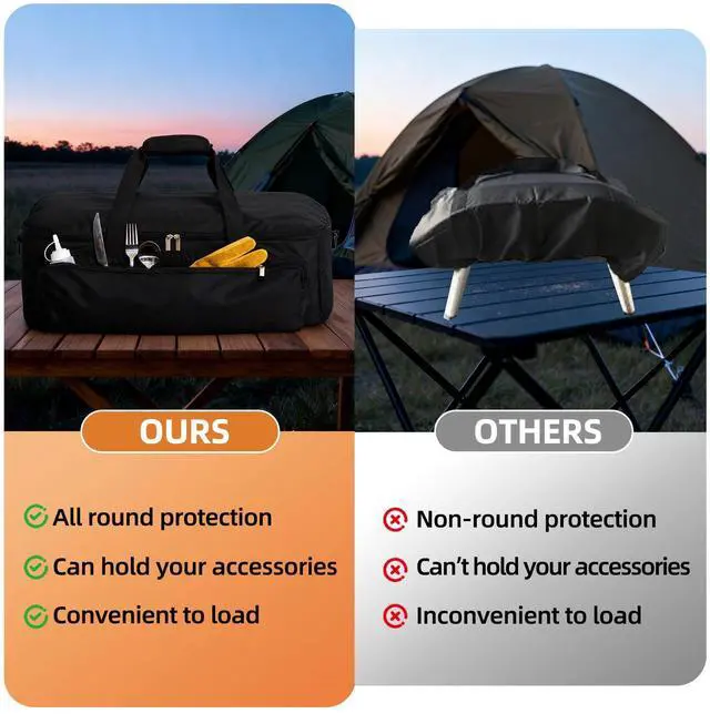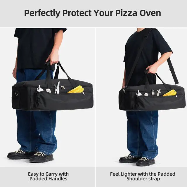 INSIDE AND OUTSIDE POCKETS FOR ACCESSORIES- Different from the cover for ooni koda pizza oven, our outdoor carry bag for ooni 16 can hold more pizza accessories! The pizza oven bag features a pocket at the front to hold tableware, gloves, and other accessories. And one large capacity pocket for pizza peel. Take the accessories you need together!