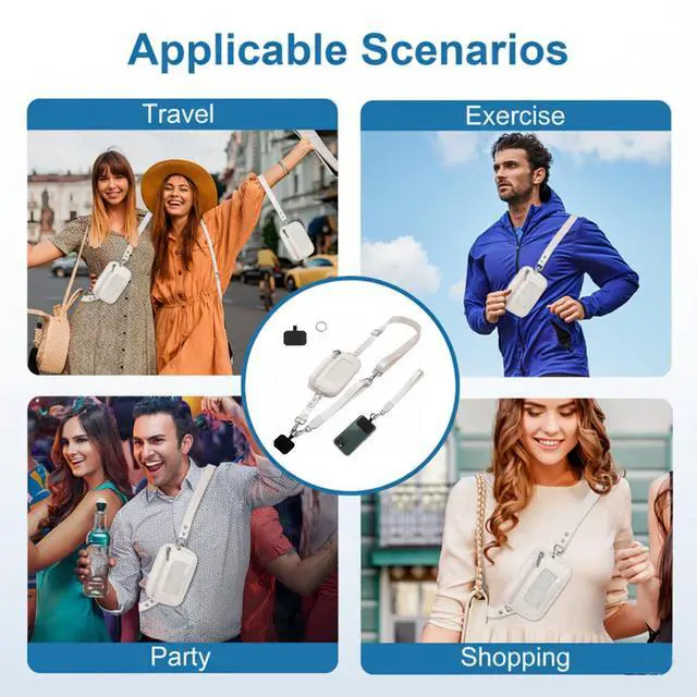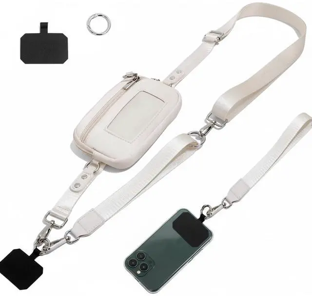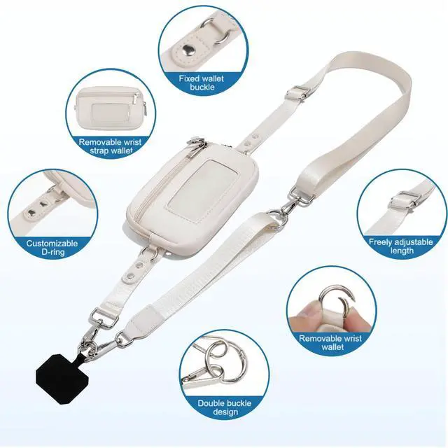 Clip, go, and stay organized! This versatile phone lanyard is your perfect on-the-go companion. Wear it as a stylish crossbody strap, a convenient neck lanyard, or detach the chic wristlet wallet for quick errands. The adjustable strap (44-63") fits all body types, while the waterproof wristlet securely holds your ID, cards, cash, and essentials. Crafted with an ultra-thin phone tab, it never blocks your charging port. Its the ultimate multi-functional accessory for travel, festivals, and daily life, designed to keep your phone and valuables safe and stylishly within reach