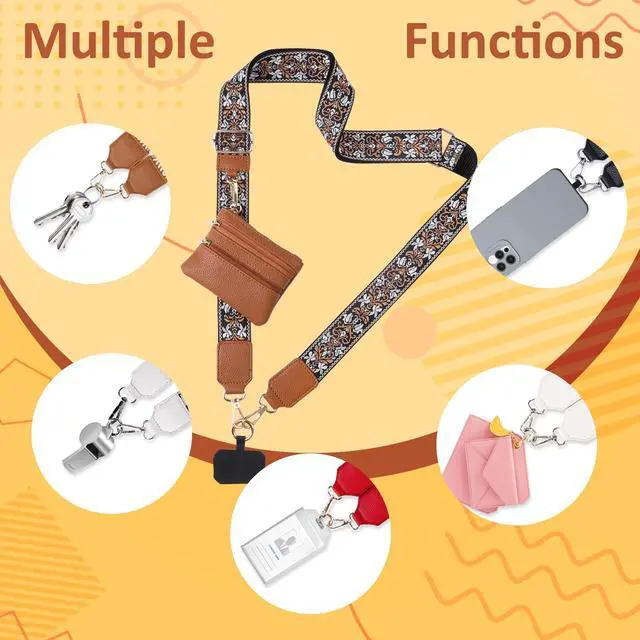 Zipper Pouch: Hold your small essentials behind! The attached zippered pouch is designed to carry your ID, credit cards, keys, and cash all in one place. This portable and detachable design, combined with the main adjustable phone strap, makes it an ideal phone strap for outdoor activities like hiking or exploring city sights, ensuring you have everything you need without the bulk of a bag