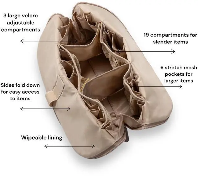 | Recommended Uses For Product | Makeup organization, Skincare travel case, Toiletry storage, Travel cosmetics bag, Bathroom organizer, Carry-on essentials, Vanity case, Grooming kit storage, Packing for trips, Daily routine organizer, Gym toiletry bag, Baby care pouch |