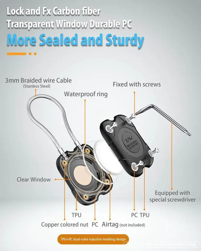 This airtag keyring is a professional outdoor sports 3mm steel wire rope that can withstand strong pulling without breaking. This airtag keychain Using metal screw locks to provide comprehensive and secure protection for the Apple Air tag.