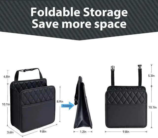 - CONVENIENT ORGANIZER: The car trash bin container takes up very little space in the car and can be easily folded into a compact size for storage when not in it.