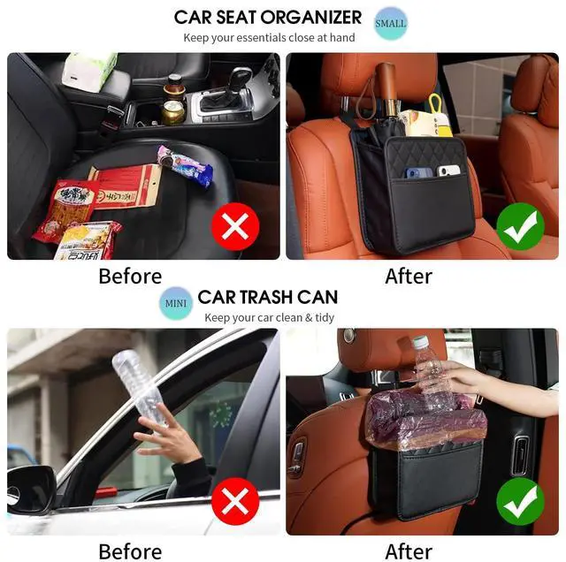 - EASY TO INSTALL: The car organizer has an adjustable elastic strap for easy fixation. It can be hung on the front or back of the car seat, hung on the armrest box, placed on the seat or floor.