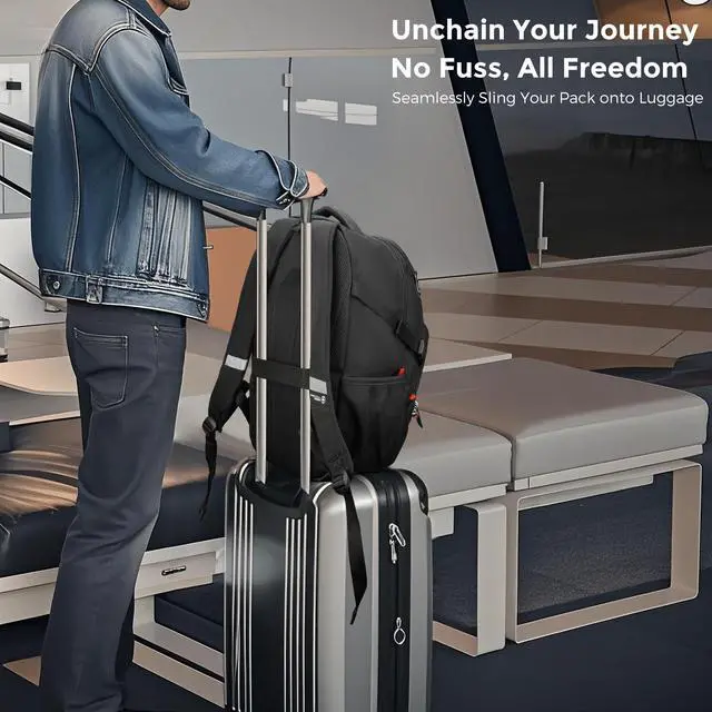 • Add-A-Bag System for Effortless Travel - Luggage strap connects backpack to rolling suitcases, allowing one-handed pulling through airports or terminals. Streamlines travel and reduces carrying fatigue
