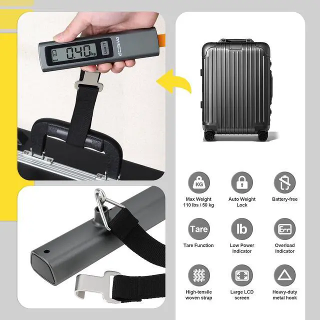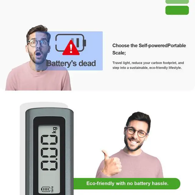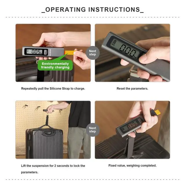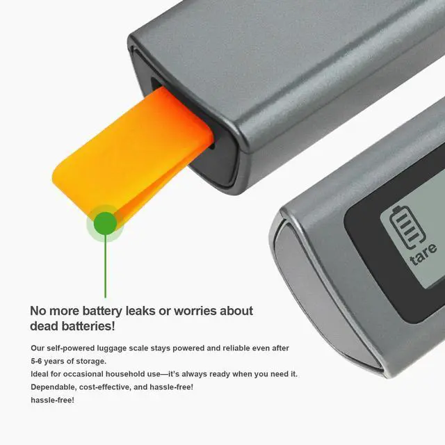 No NEED BATTERYSay goodbye to the hassle of searching for replacement batteries! Our innovative luggage scale generates power simply by pulling the strap.This luggage scale is a must-have travel accessory for anyone who wants to avoid overweight baggage fees and ensure their luggage is within the weight limit.